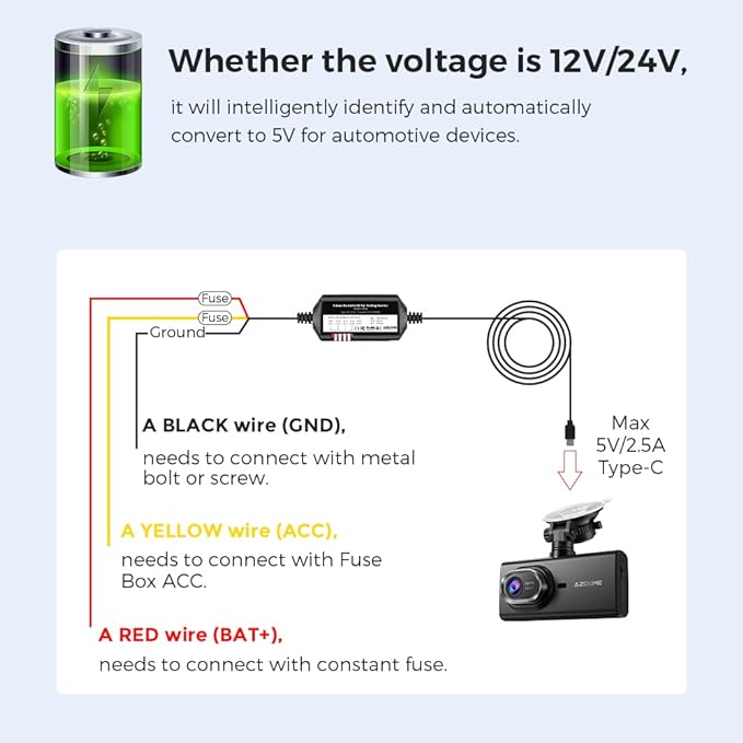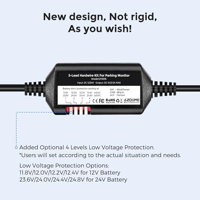 AZDOME JYX05 3-Lead Acc Hardwire Kit Type-C Port