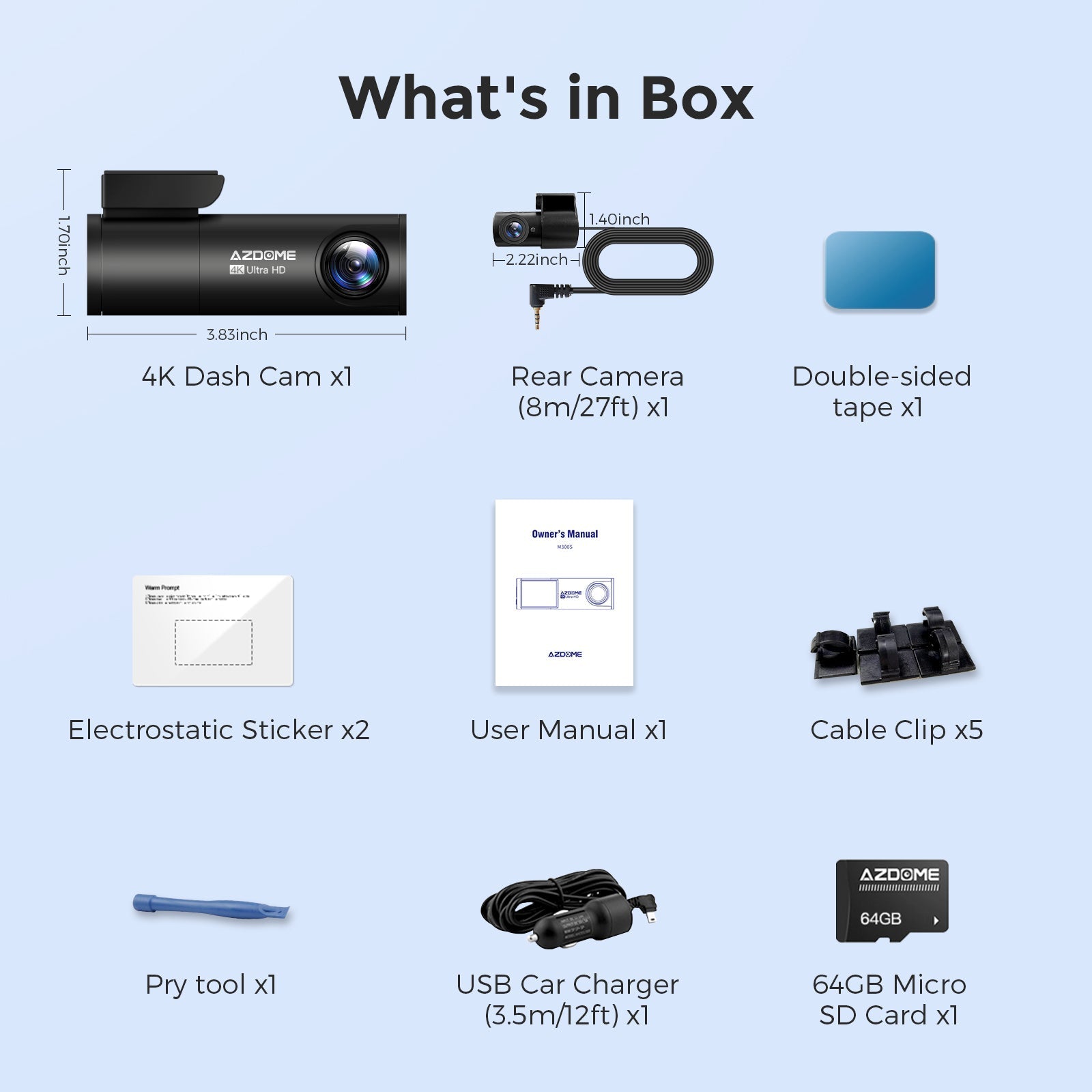 AZDOME M300S 2CH 4K Front Rear Dash Cam