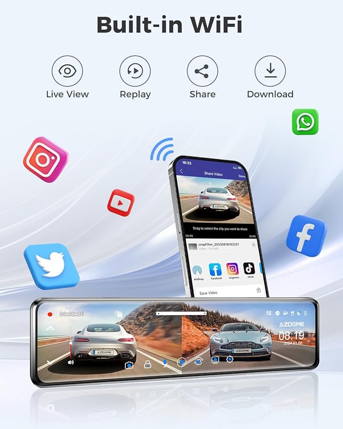 AZDOME PG19X Front and Rear 4K Mirror Dash Cam