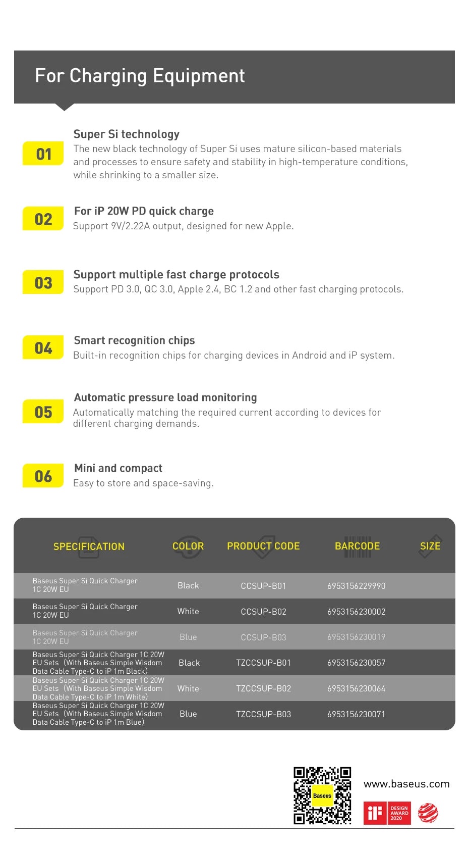 Function: 20w Travel Charger Quick Charge QC3.0 PD 3.0 FCP