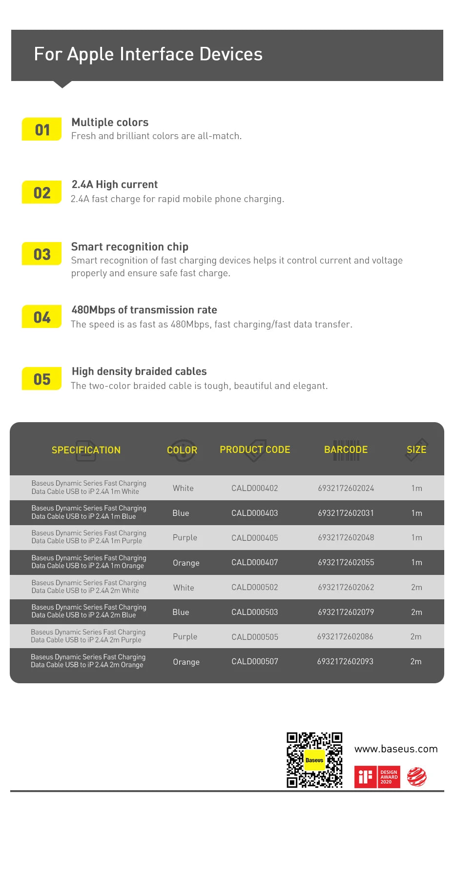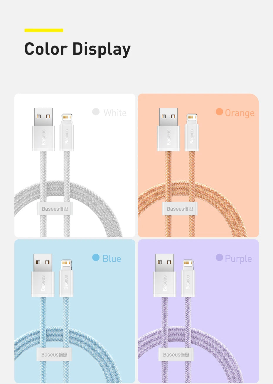 SPECIFICATIONS Brand Name: BASEUS Certification: CE Choice: yes Connector A: LIGHTNING Connector B: LIGHTNING Current: 2.4A Feature 1: Data Cable... Read more