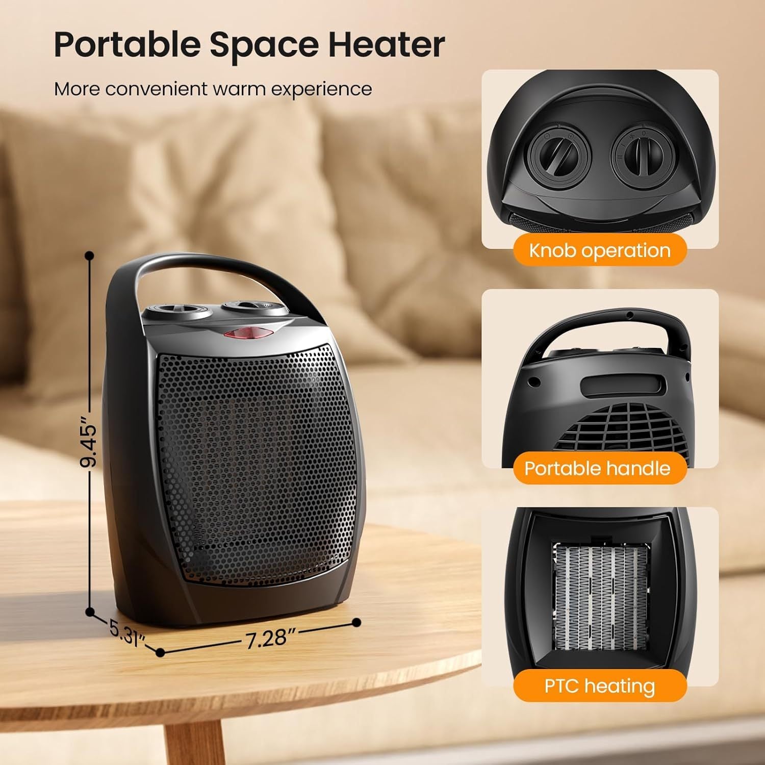 DIBELLAY Portable Ceramic Space Heater – 750W/1500W, Safe & Adjustable