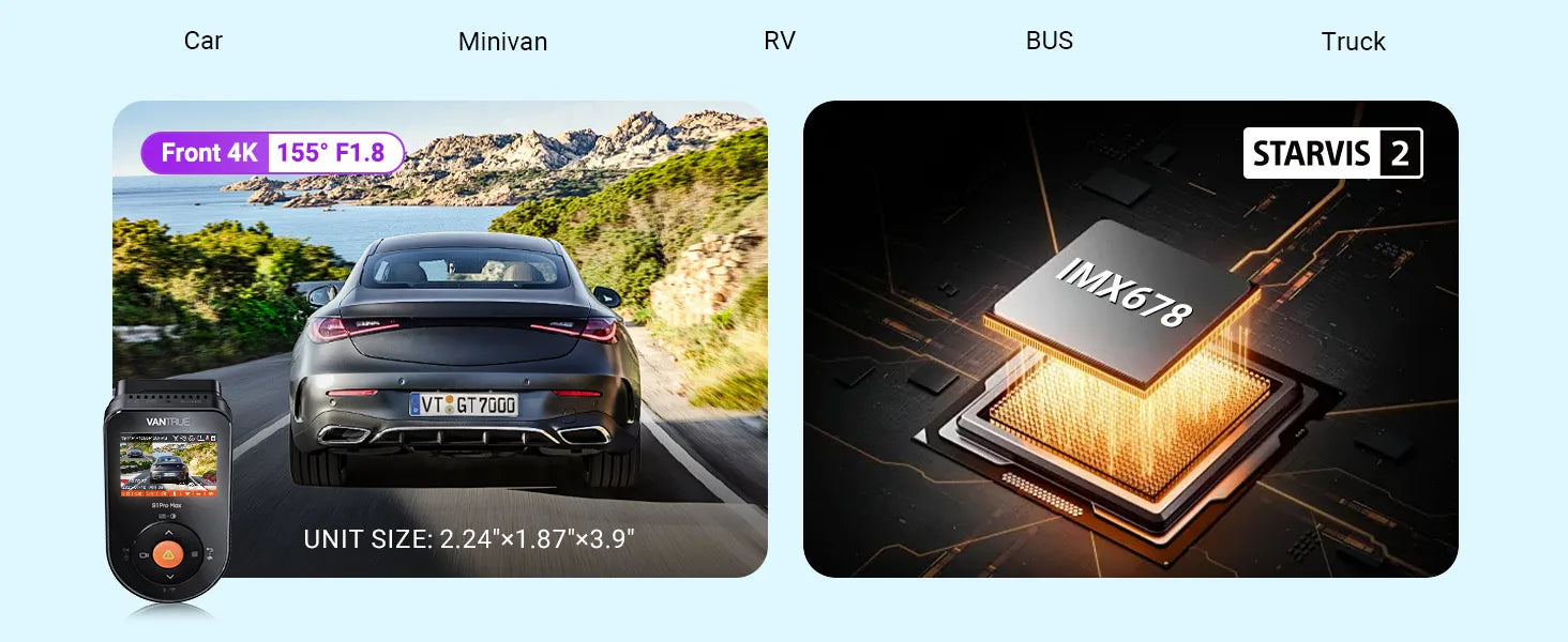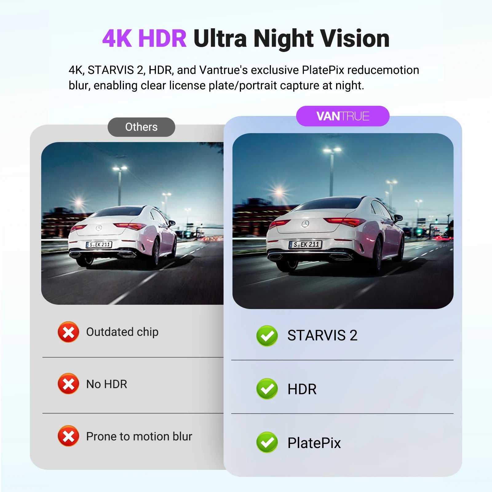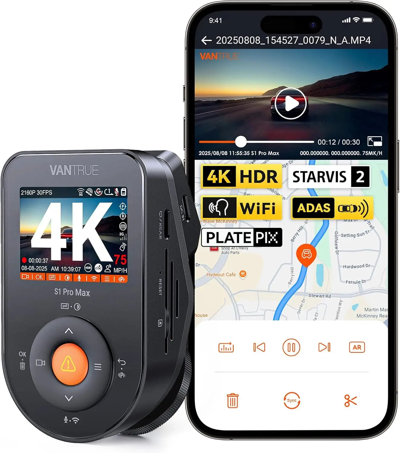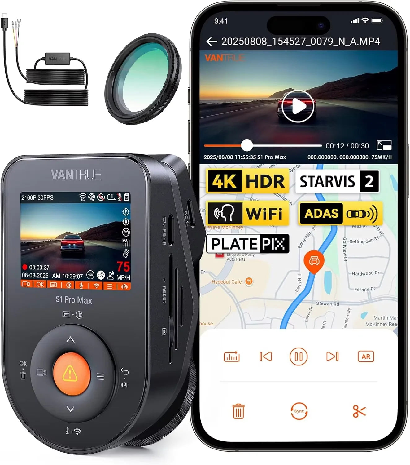 DIBELLAY Vantrue S1 Pro Max 4K Dash Cam – Front STARVIS 2, HDR, Night Vision, 5G WiFi, ADAS, GPS, 24h Parking Mode