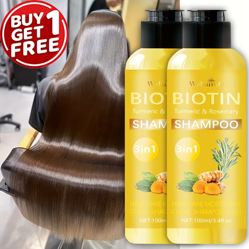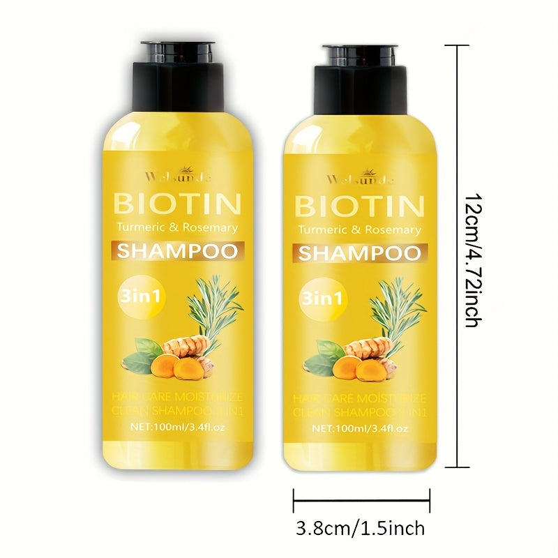 Set of 2, 3-In-1 Biotin Shampoo Featuring Rosemary And Turmeric